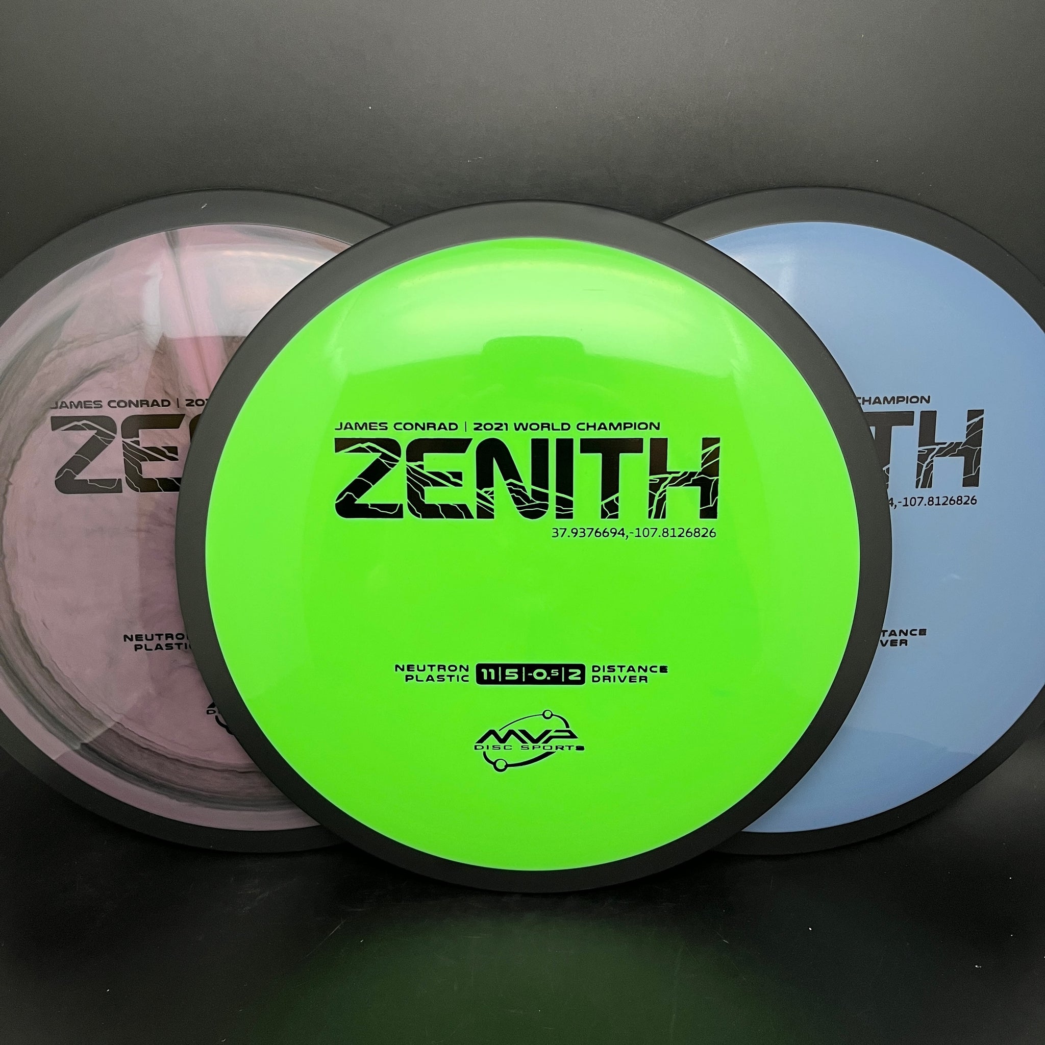 The first distance driver in the James Conrad line is here — introducing the Zenith in Neutron plastic! Designed to feel as great in the hand as it flies, the Zenith is a control distance driver with flight numbers of 11 | 5 | -0.5 | 2. With a high power throw, the Zenith will exhibit just enough distance lengthening turn from a flat release before its confident fade kicks in — displaying the ideal flight pattern for a controlled distance drive. And, thanks to its subtle turn, the Zenith can shape some truly impressive lines from an anhyzer release too.