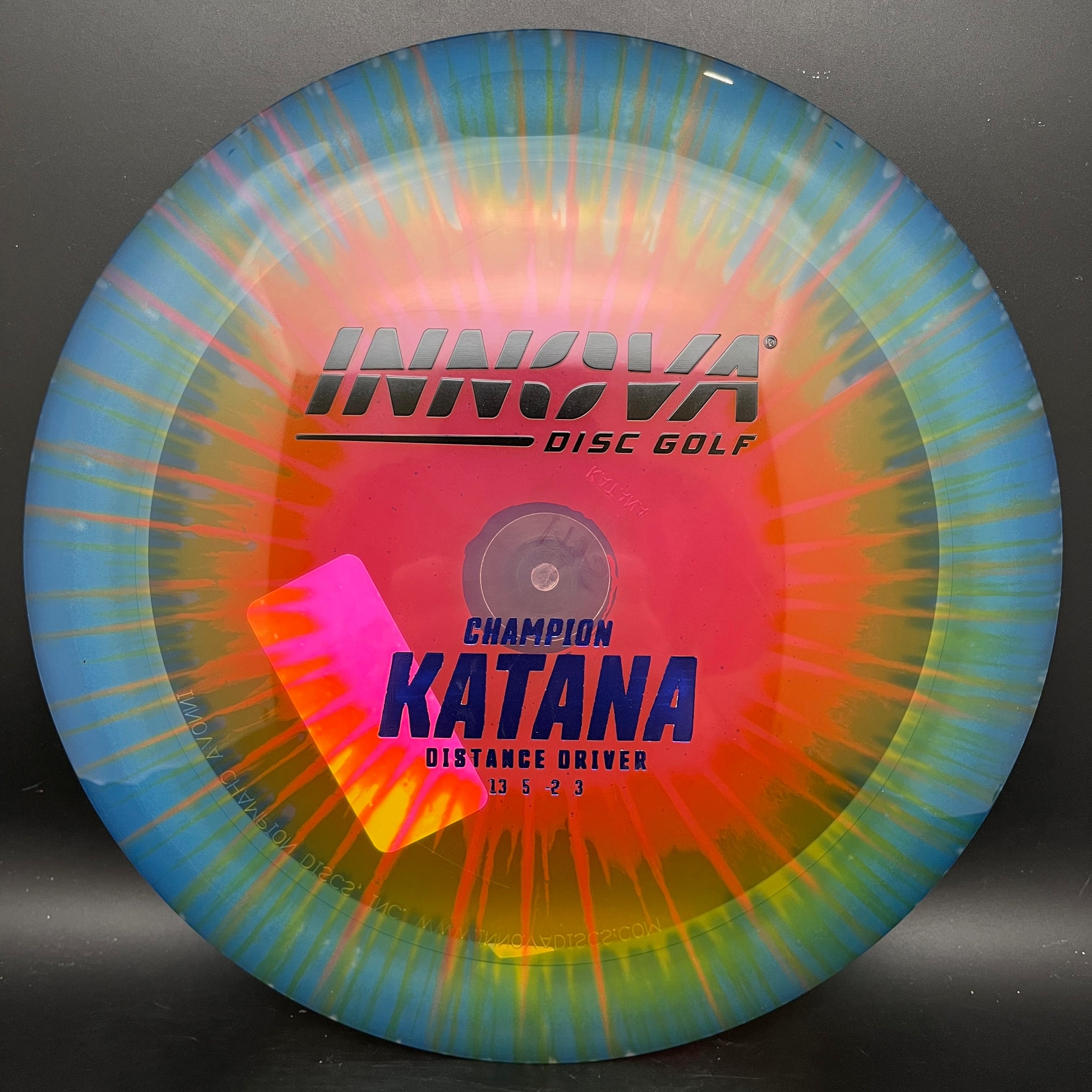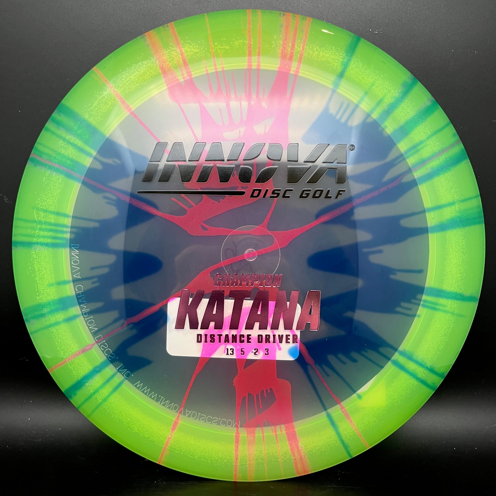 The Katana is built with the finesse thrower in mind. Recommended downwind driver. Hit the angle right and watch it bolt out of sight. The physical characteristics resemble a Boss with the flight characteristics of a Sidewinder on steroids. Master the technique of Katana and rule the course. Champion Katanas have slightly different flight characteristics at [13|5|-2|3].
