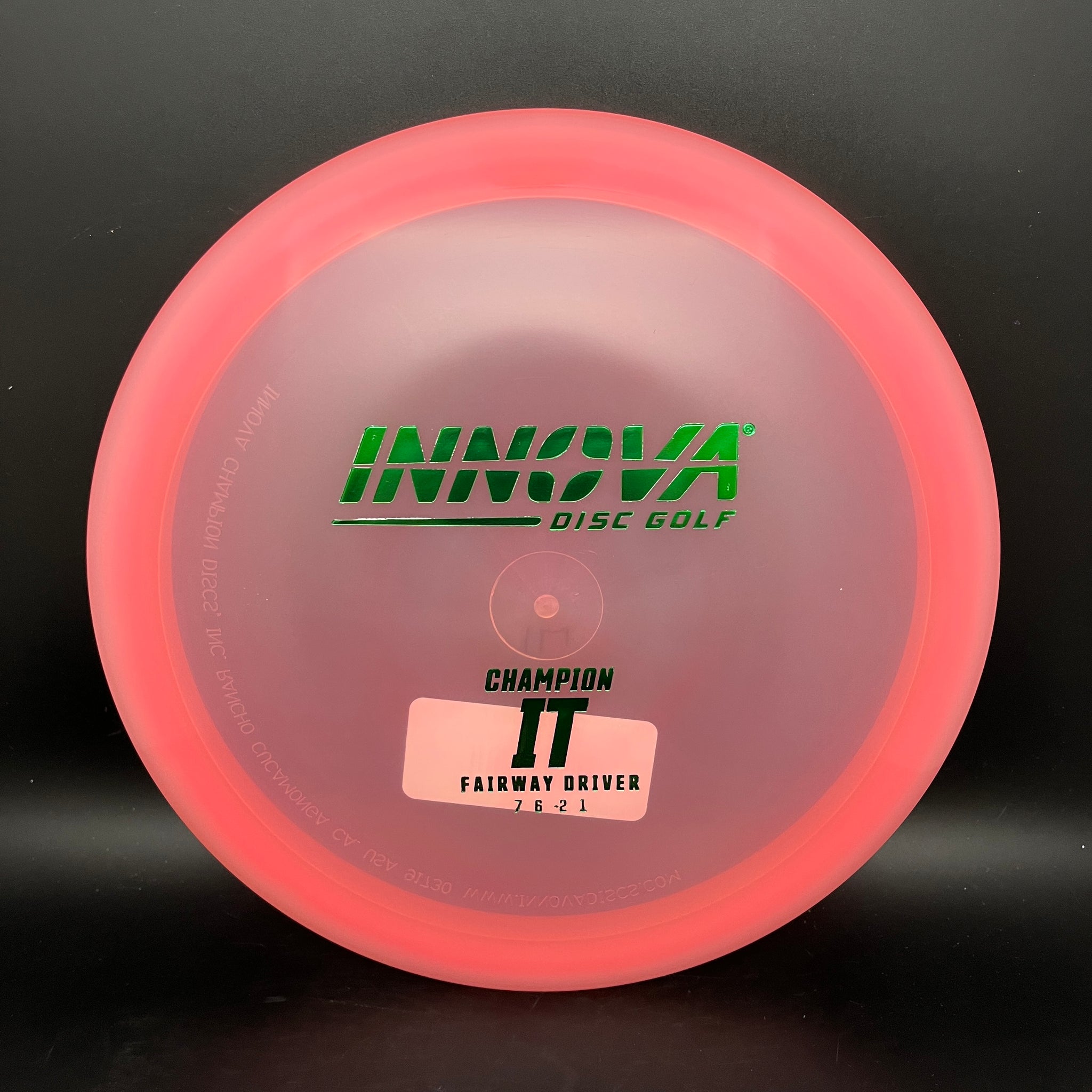 The Innova IT was developed to go straight and far, effortlessly. With ITs gentle turn and unmatched glide, tightly wooded fairways feel open and attackable. When another Fairway Driver would fade and drop, IT holds on the line of release and carries. Great for standstill and low ceiling shots that still need to get distance. IT also makes an exceptional roller disc, even when new.