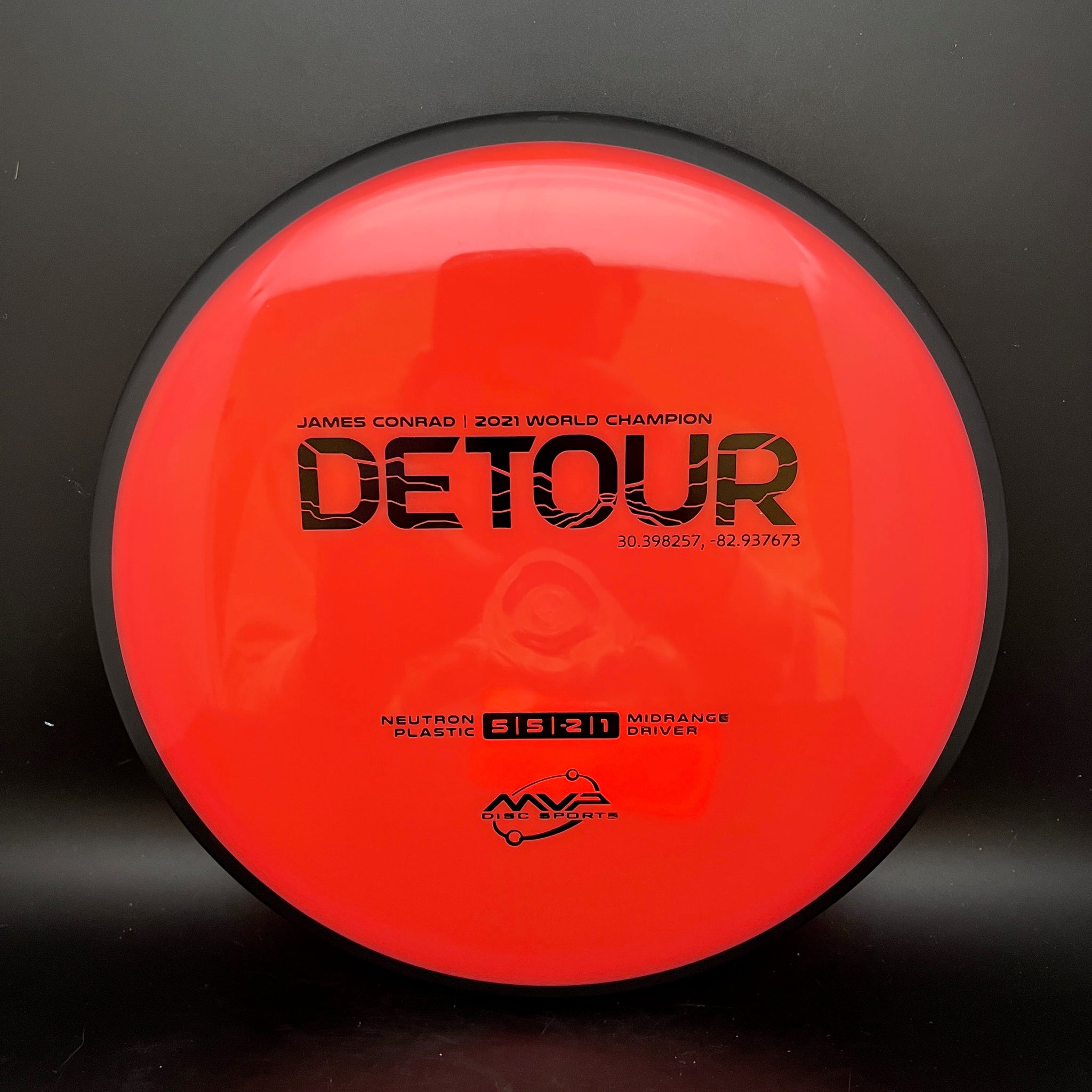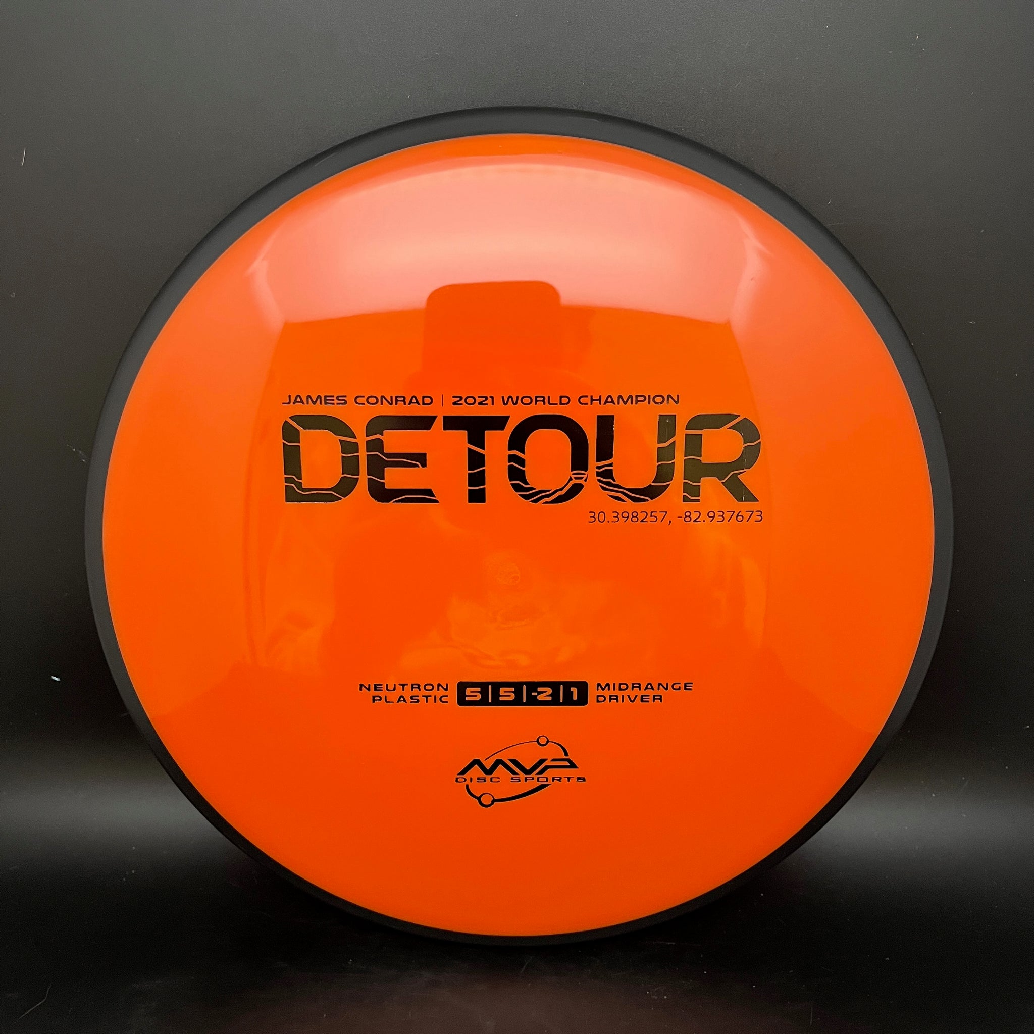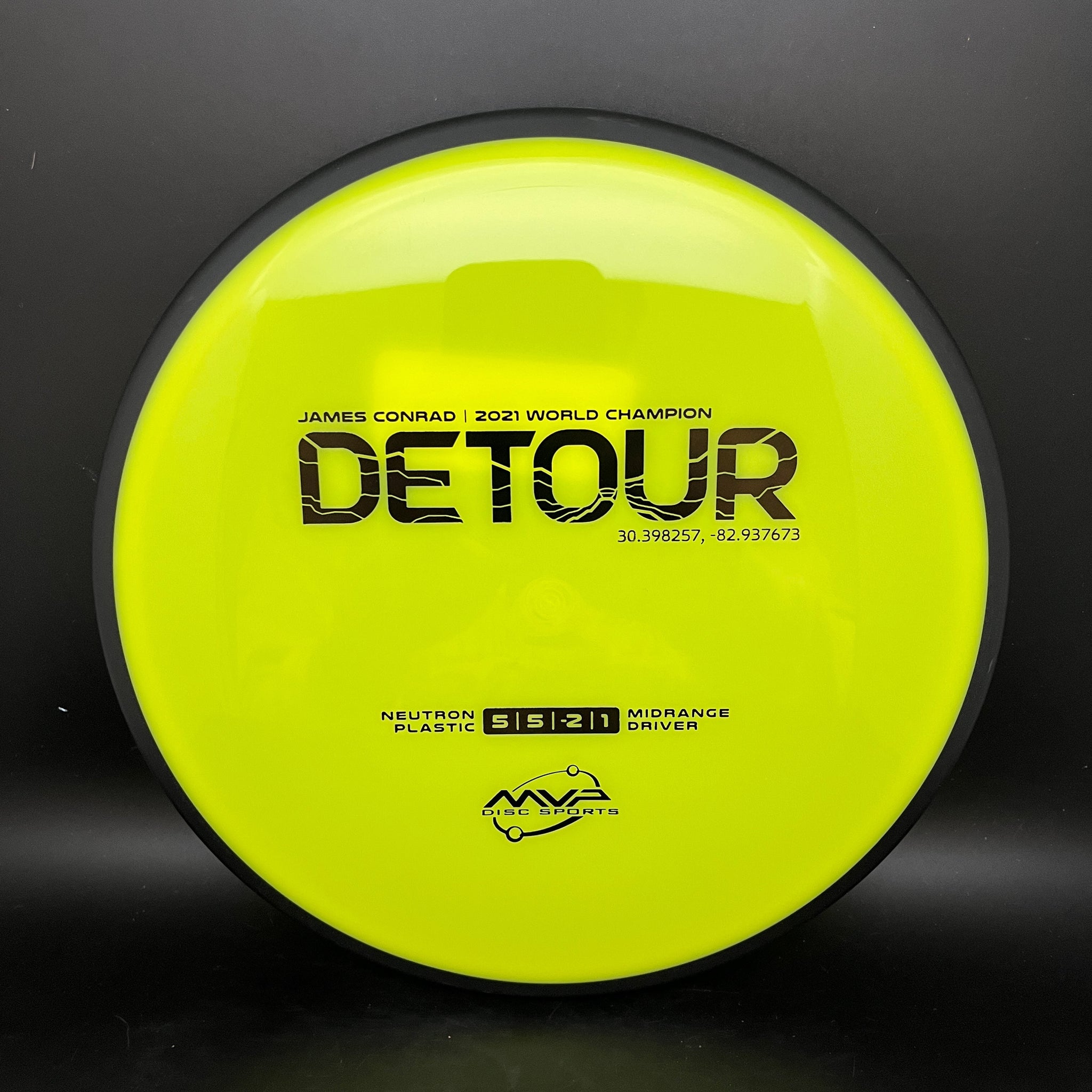 The fan favorite Neutron Detour has arrived as a stock offering! Fitting perfectly between the Axiom Hex and MVP Uplink, the newest addition to the James Conrad lineup slides in with flight numbers of 5 | 5 | -2 | 1. As a backhand dominant player, Conrad is known for his beautiful turnover lines, and the Detour excels beautifully at those long panning turnovers as well as easy hyzer-flips. Experienced players will find the Detour to be exceptionally easy to manipulate for a wide variety of shot shapes, while newer players will find a delightfully straight flier, perfect for learning the game.