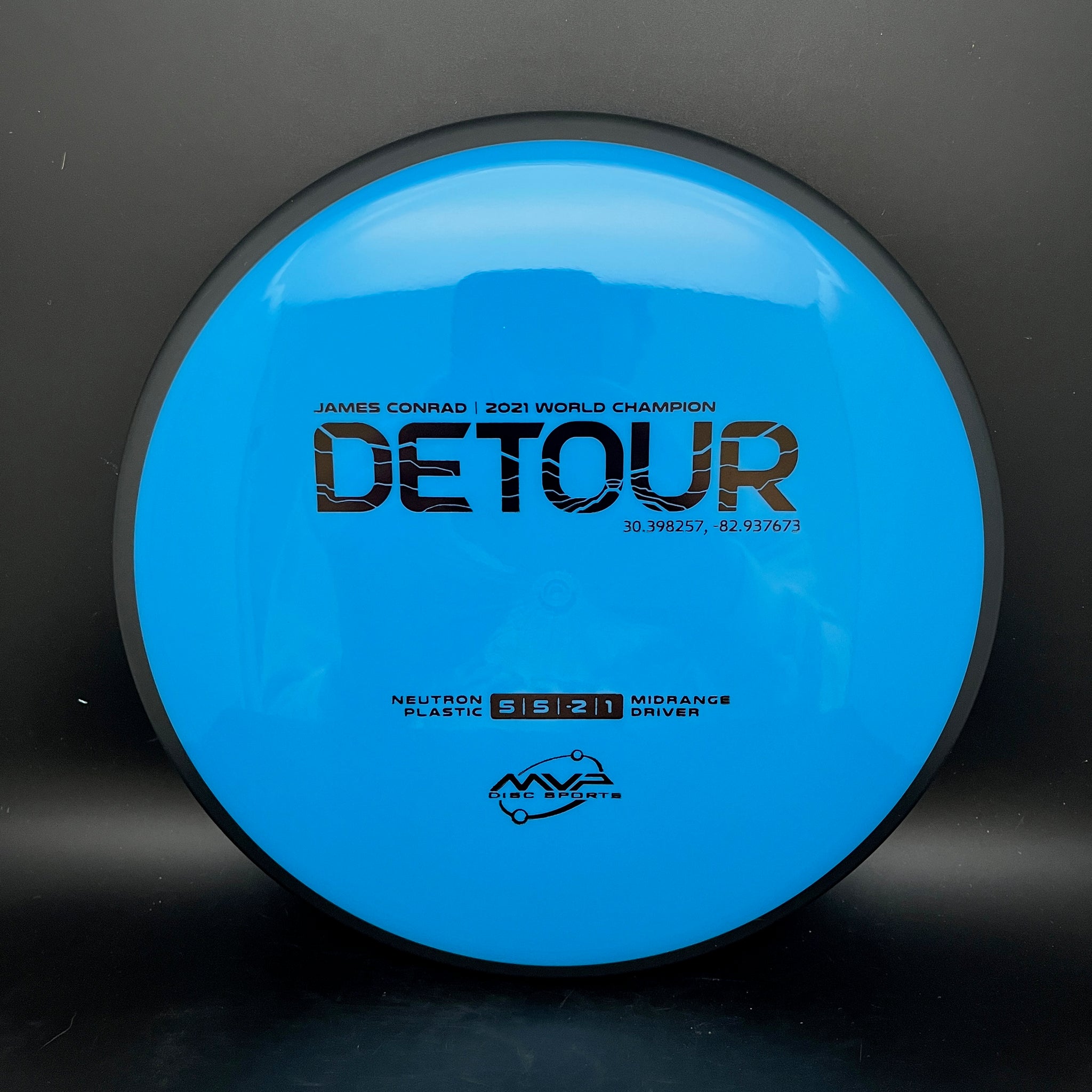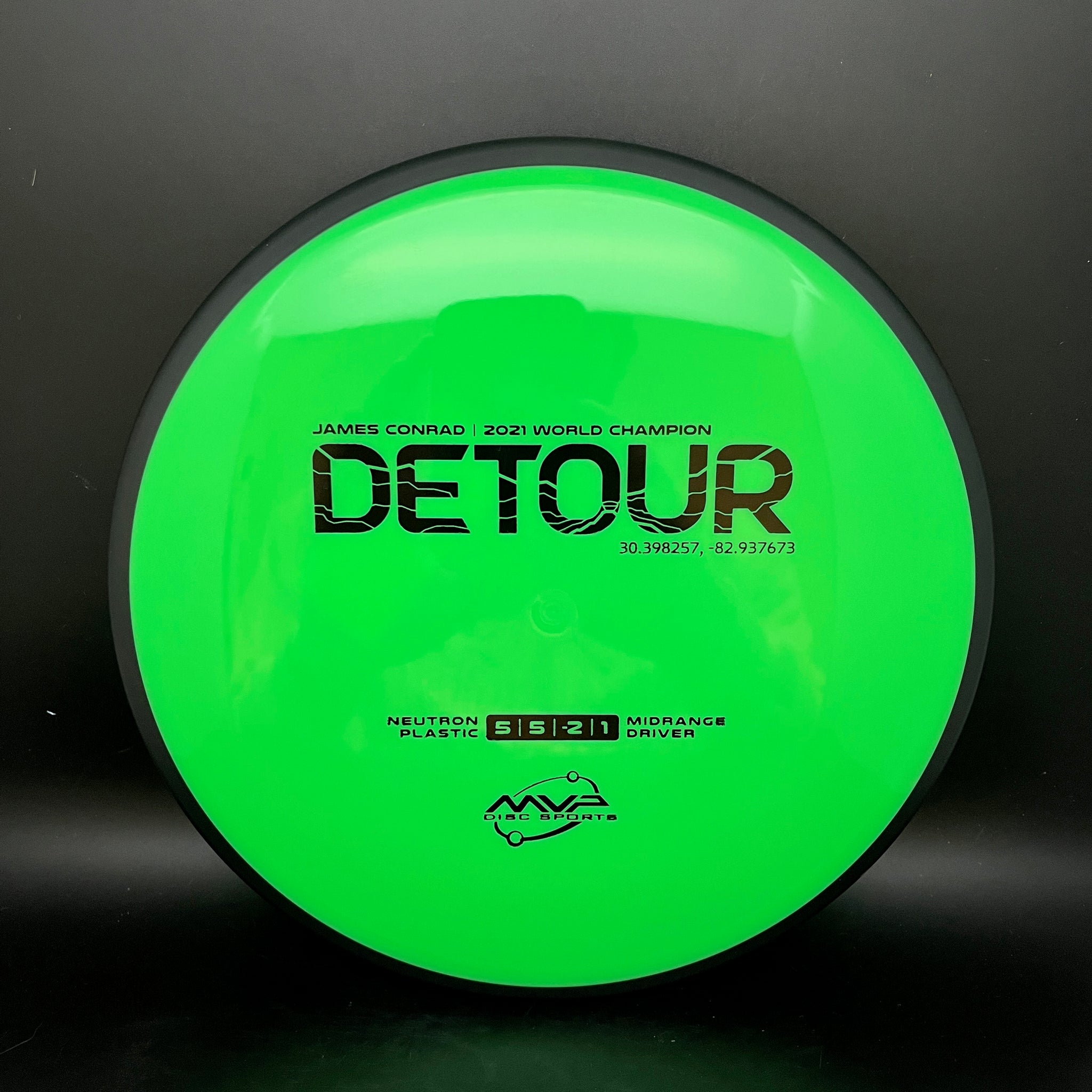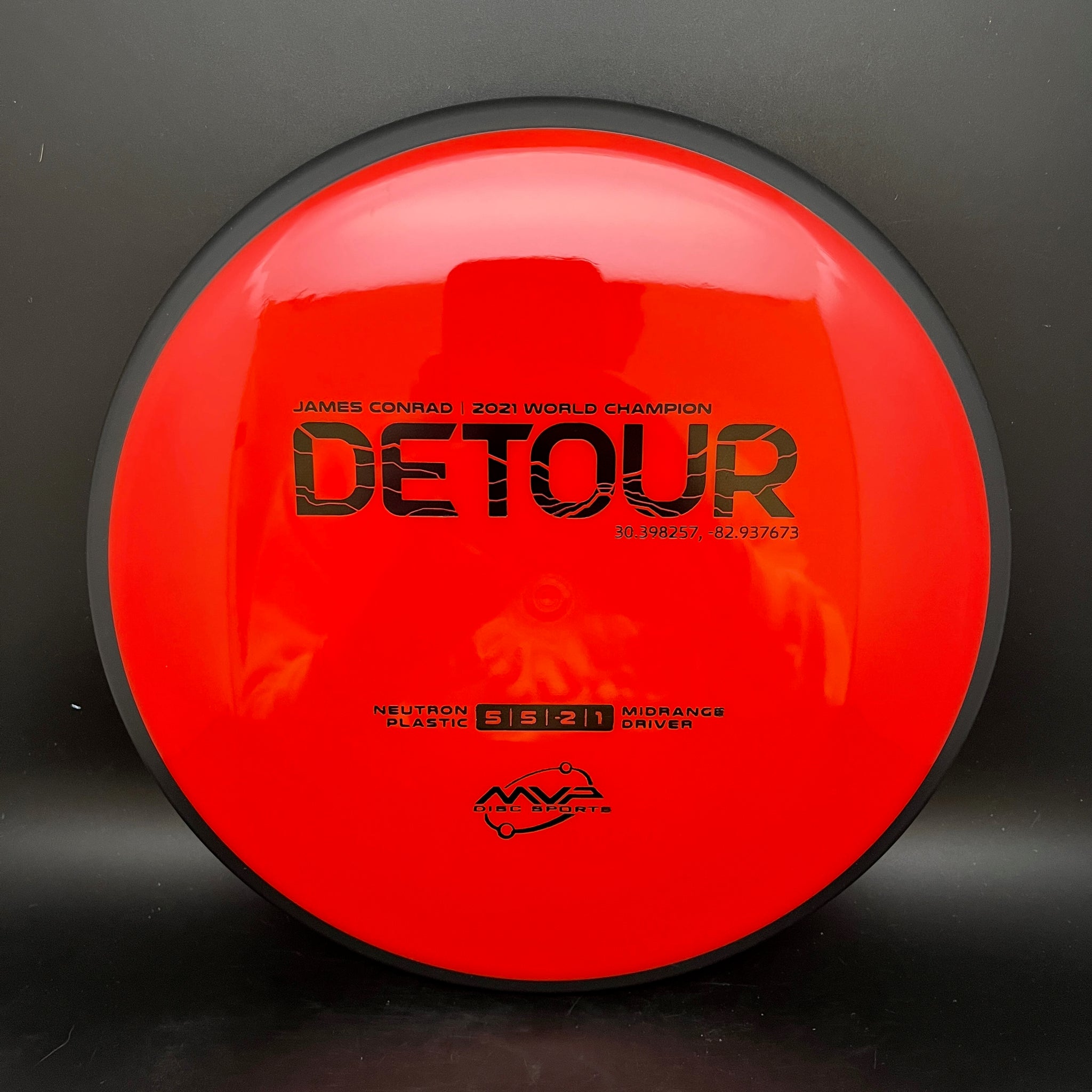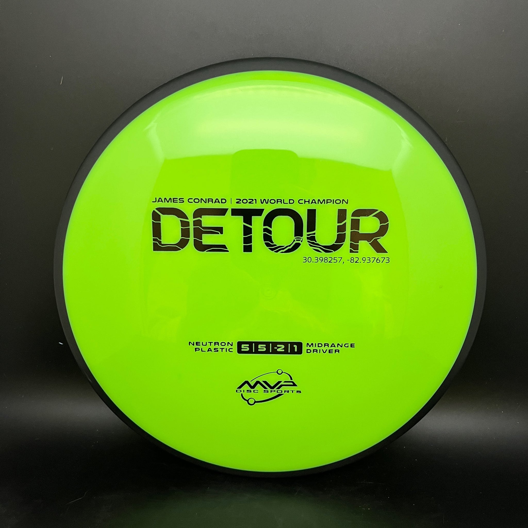 The fan favorite Neutron Detour has arrived as a stock offering! Fitting perfectly between the Axiom Hex and MVP Uplink, the newest addition to the James Conrad lineup slides in with flight numbers of 5 | 5 | -2 | 1. As a backhand dominant player, Conrad is known for his beautiful turnover lines, and the Detour excels beautifully at those long panning turnovers as well as easy hyzer-flips. Experienced players will find the Detour to be exceptionally easy to manipulate for a wide variety of shot shapes, while newer players will find a delightfully straight flier, perfect for learning the game.