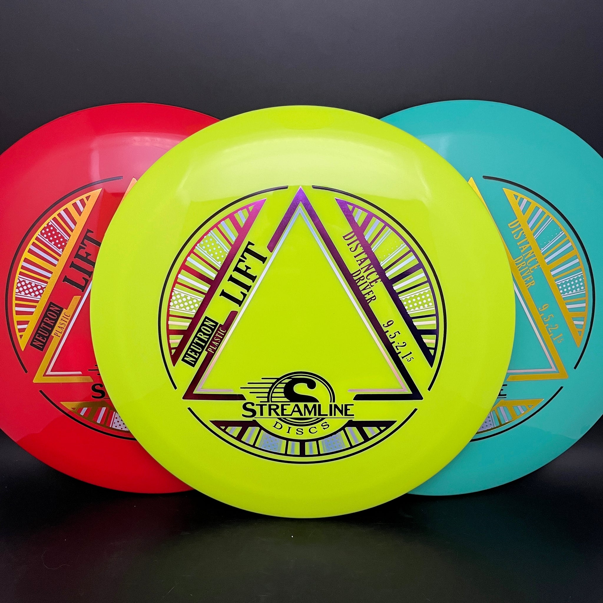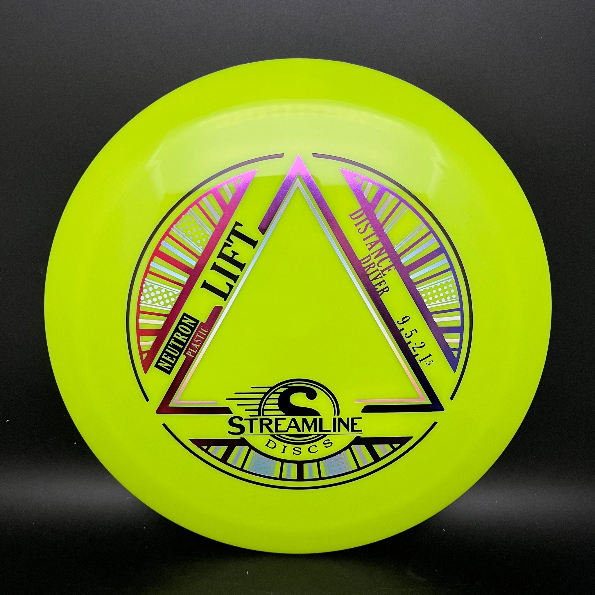 The Lift is Streamline’s understable distance driver, designed as a straight flying driver with a comfortable rim size and slightly domed profile. It is the second disc along with the Flare in the new 19mm Speed 9 Driver Class for Streamline. In Streamline Neutron Plastic the Lift has premium grip and durability, along with a huge variety of Neutron and Cosmic Neutron color options. For controllable flight lines with effortless glide, activate Bernoulli’s principle with the Streamline Neutron, Proton and Cosmic Neutron Lift!