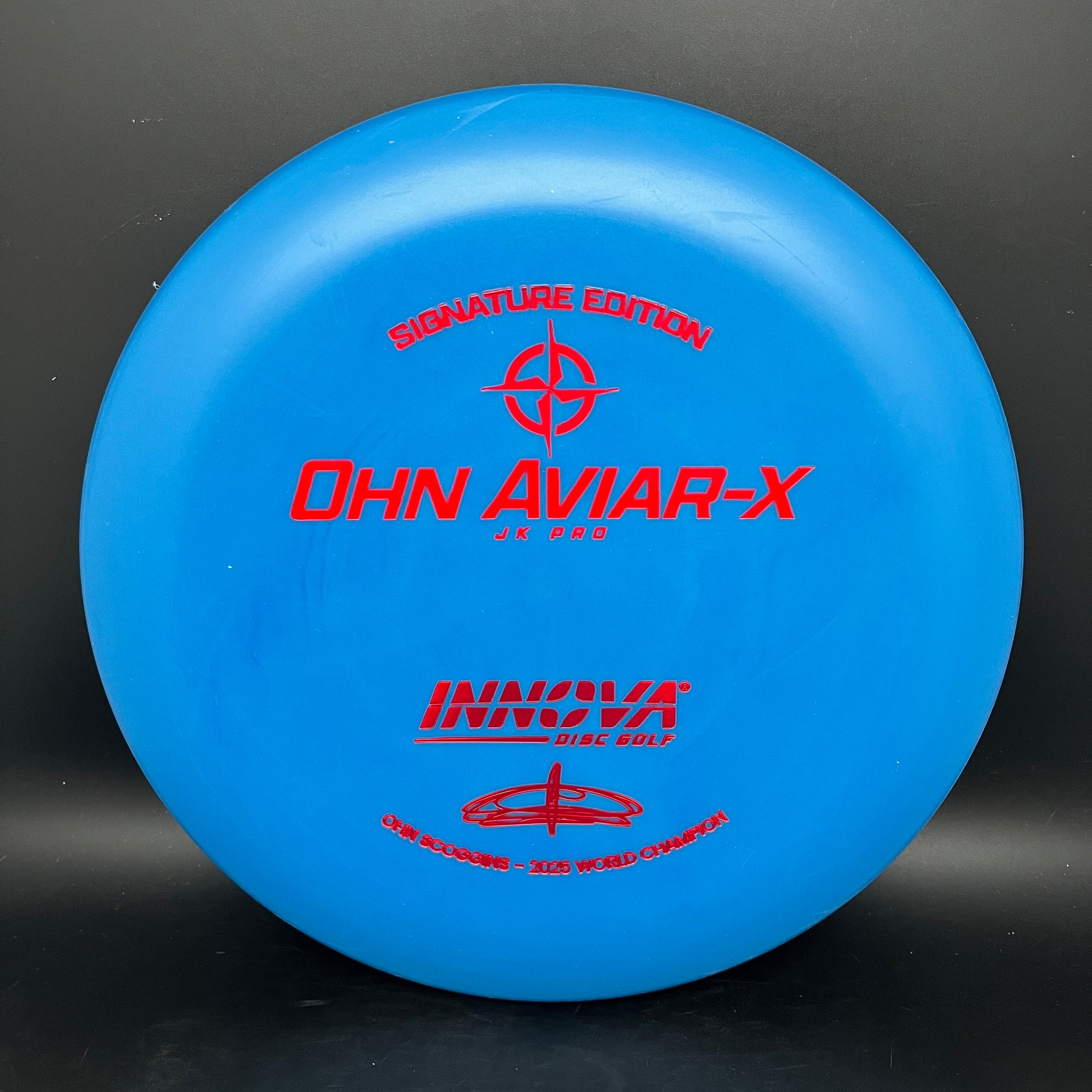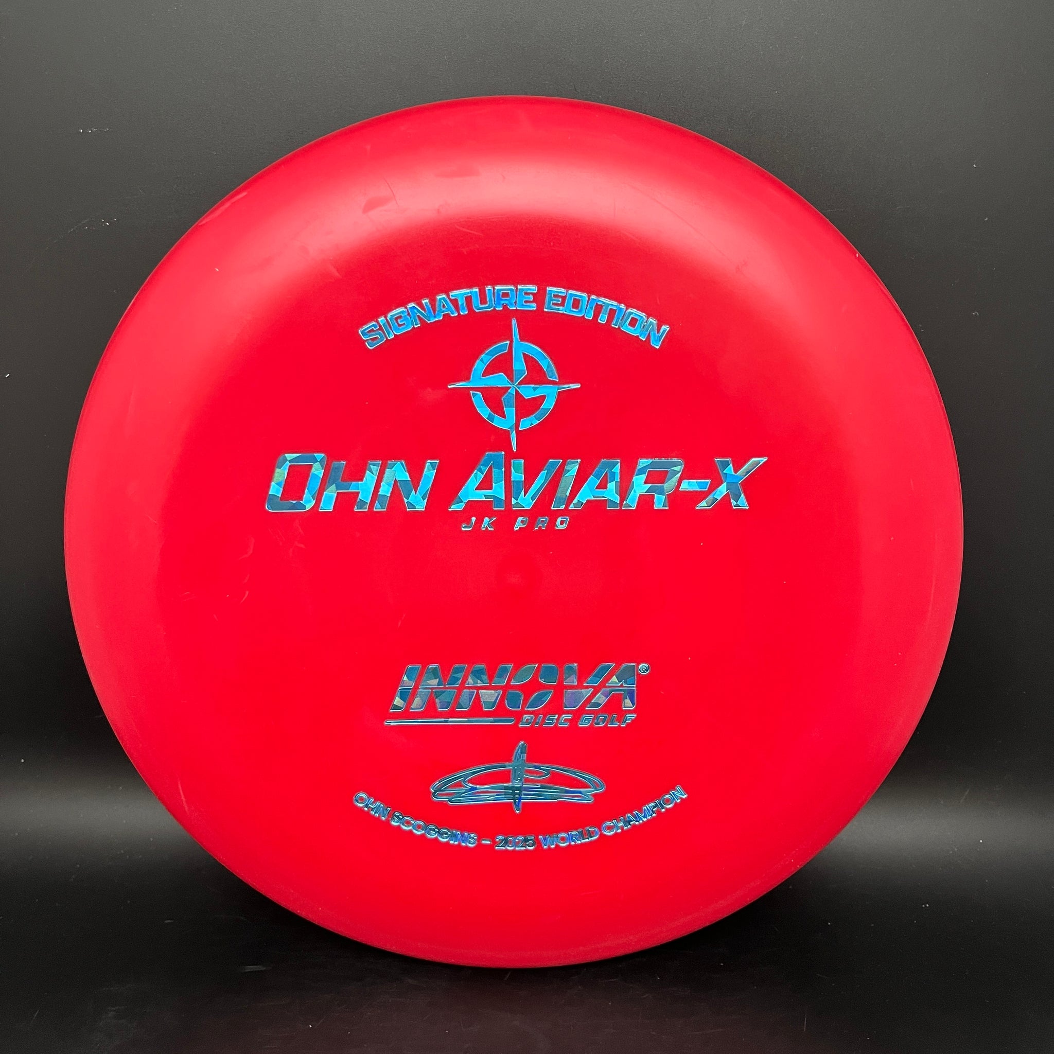 The Ohn Aviar-x uses the Aviar Driver mold (with big bead) and features the soft, grippy JK Pro plastic that’s helped her top the putting stats year after year — over 85% C1x in 2025. These Signature Edition putters hold the line, grab the chains, and deliver the touch that defines Ohn Scoggin’s game.