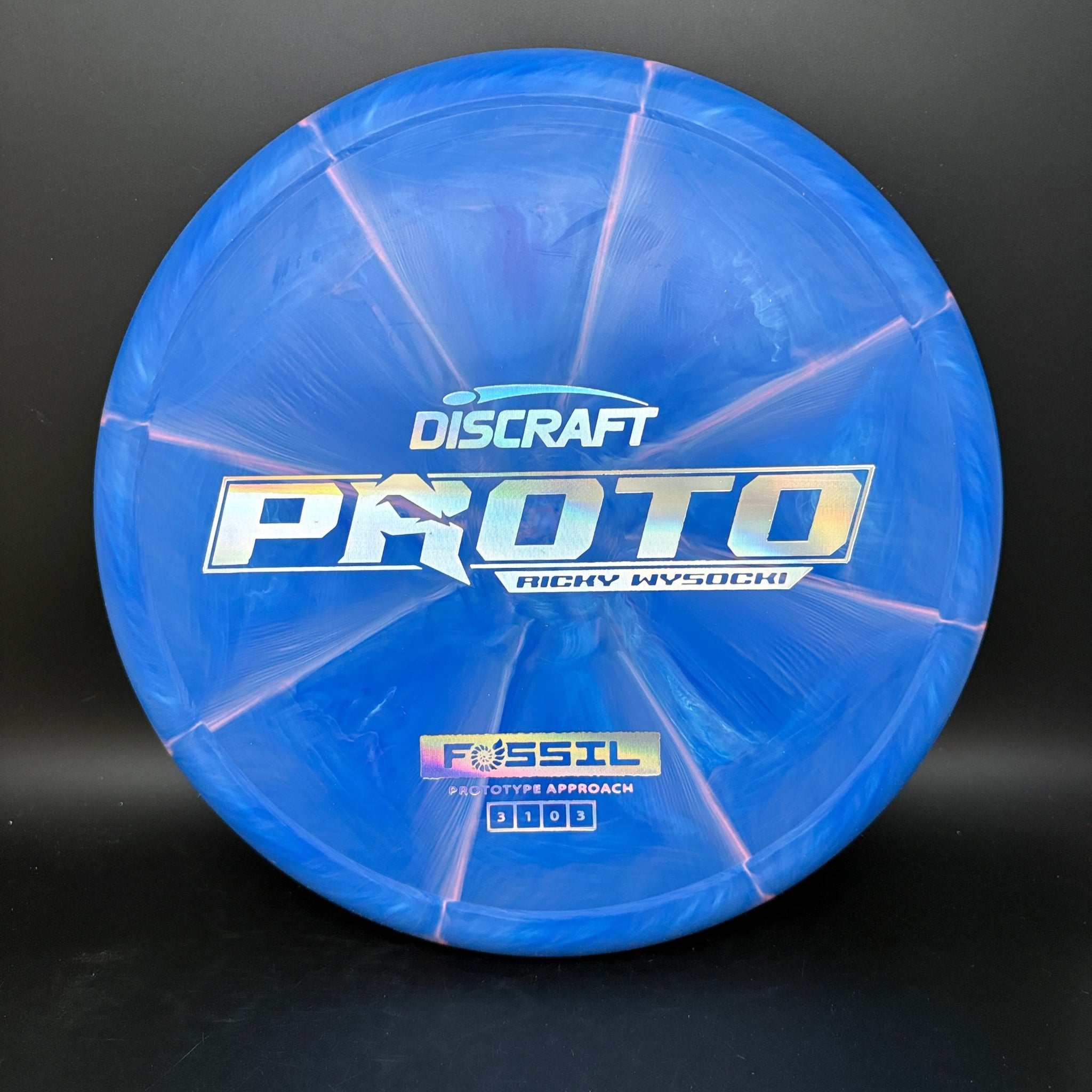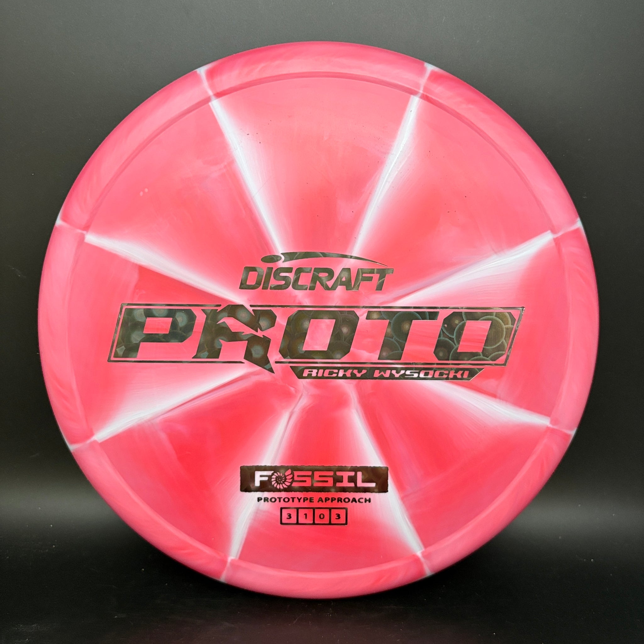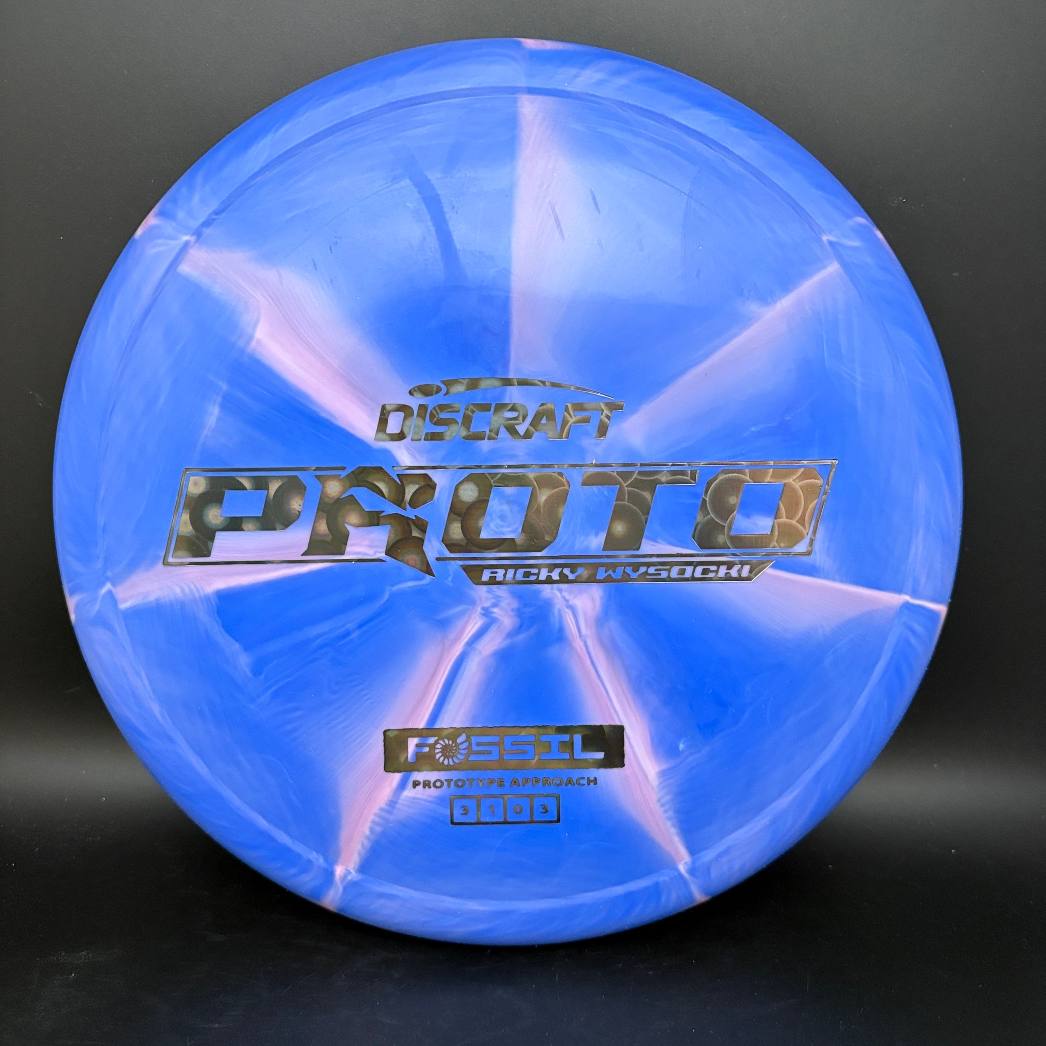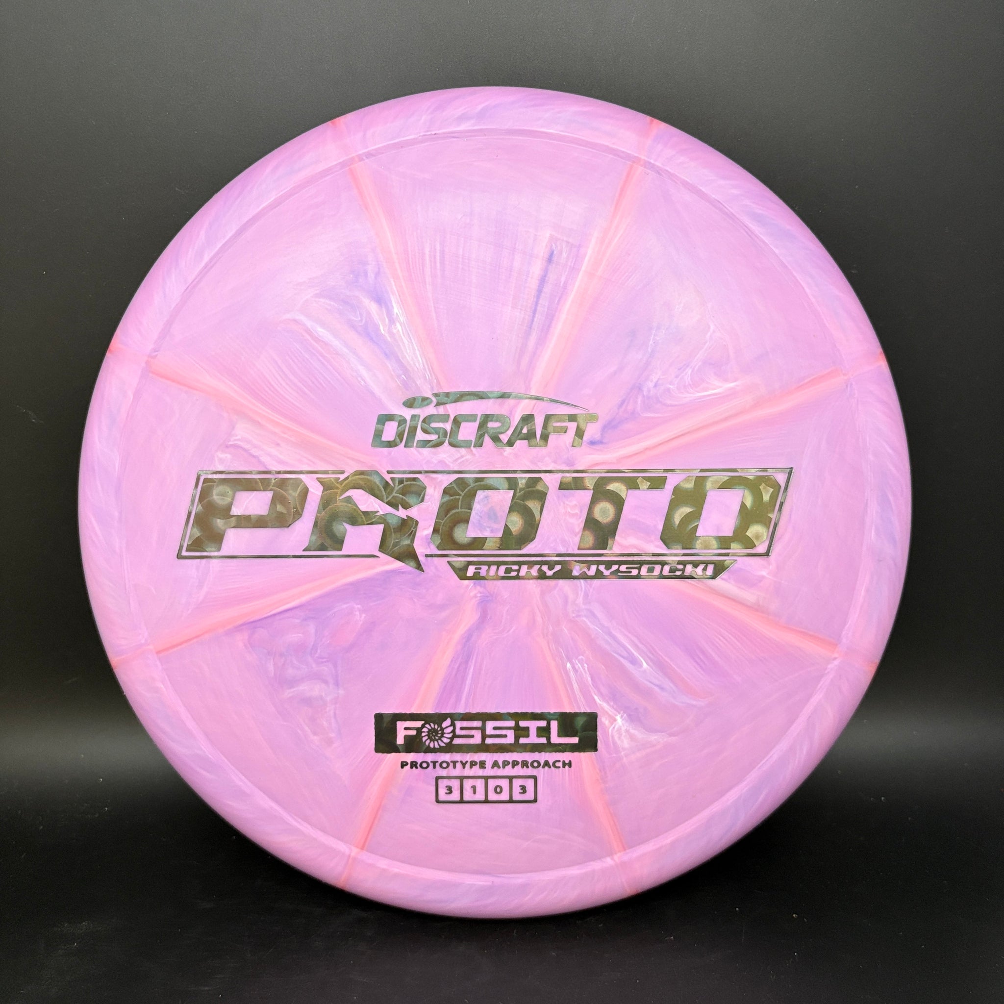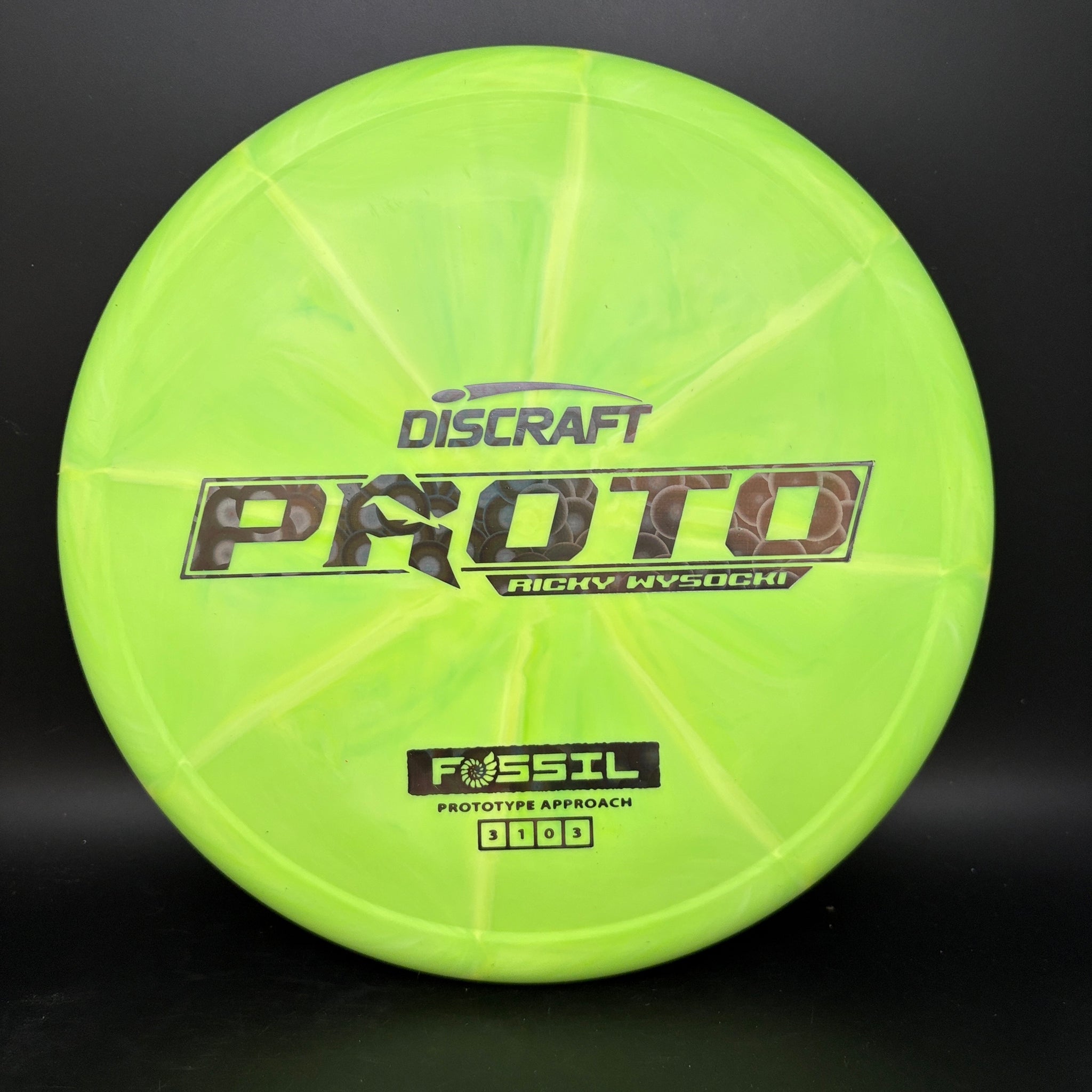 The Fossil is Ricky Wysocki’s prototype putt and approach disc, designed as a slow-flying overstable option. Featuring a distinct ringer-style top for added feel, a micro-bead, and dependable torque resistance, the Fossil is universally comfortable for both forehand and backhand throws.